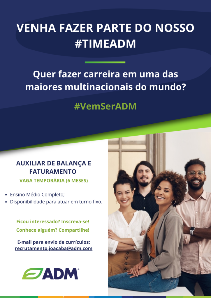 Temos uma vaga aberta imediatamente para a unidade da ADM na América do Sul, Localizada no Brasil, em Joaçaba/SC.
