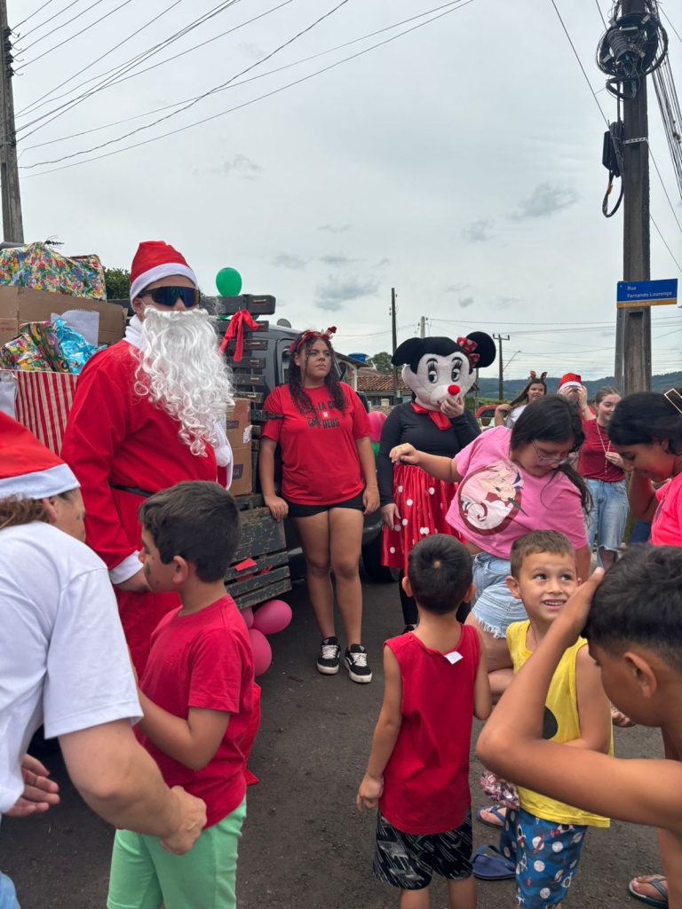 Ação solidária distribuiu 1.100 presentes em bairros de Joaçaba no dia 21 de dezembro, levando alegria a crianças e famílias no Natal.
