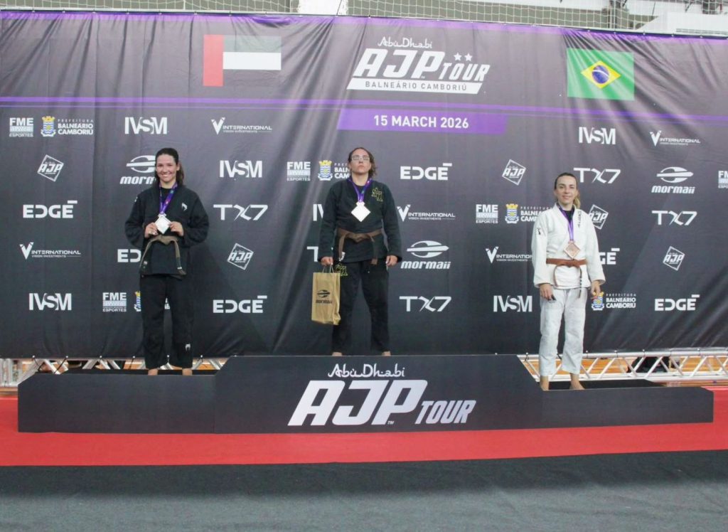 Ariela Pereira brilhou no AJP Tour Balneário Camboriú nas modalidades de kimono e No-Gi. Sua equipe, a CJJ, conquistou 15 medalhas.