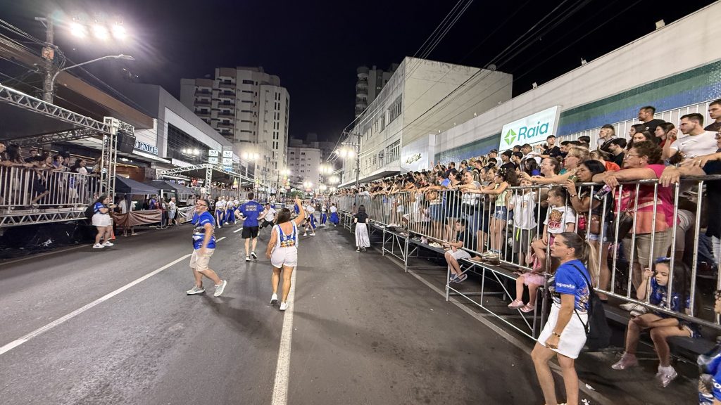 A Avenida XV de Novembro viveu uma prévia eletrizante do que está por vir no Carnaval 2026. Durante três noites consecutivas, o público compareceu em peso, aproveitando a entrada gratuita para lotar arquibancadas e camarotes. O calor típico de fevereiro não intimidou os foliões e serviu de combustível para as agremiações de Joaçaba e Herval d’Oeste, que transformaram o “treino” em um verdadeiro espetáculo.