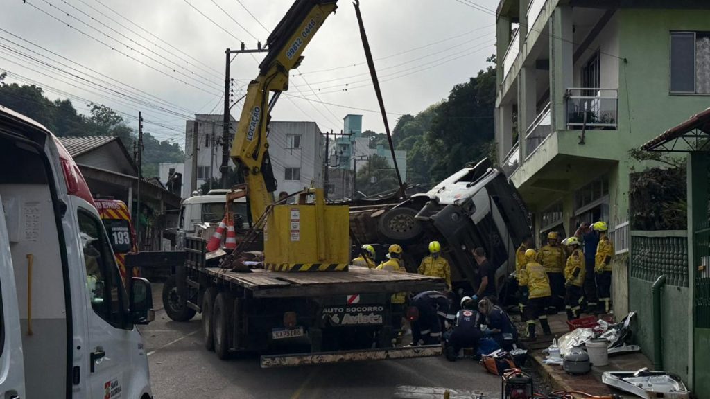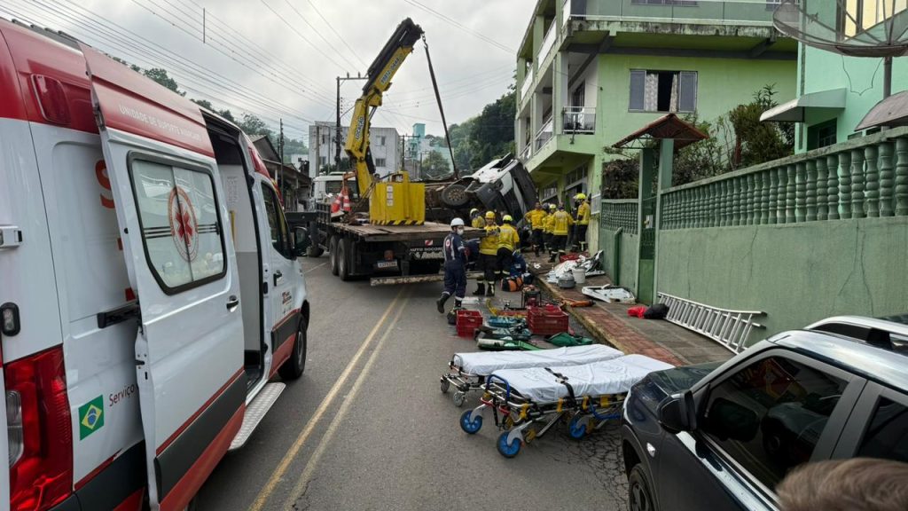 Um acidente grave foi registrado por volta das 7h da manhã desta quinta-feira (13) na Rua Santa Catarina, em Herval d’Oeste. De acordo com as primeiras informações, um caminhão teria perdido os freios, colidindo em um barranco e, na sequência, atingindo vários veículos que estavam estacionados na via.