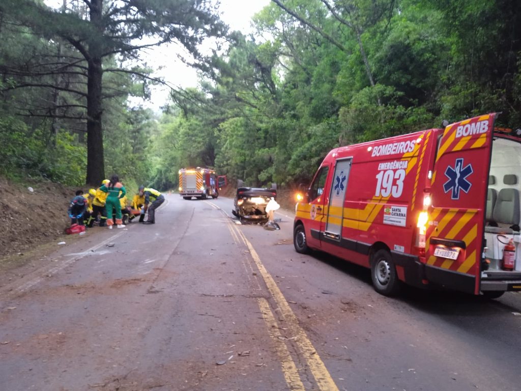 Acidente na SC-150 em Luzerna deixou duas pessoas feridas na madrugada deste sábado. Rodovia ficou parcialmente interditada.