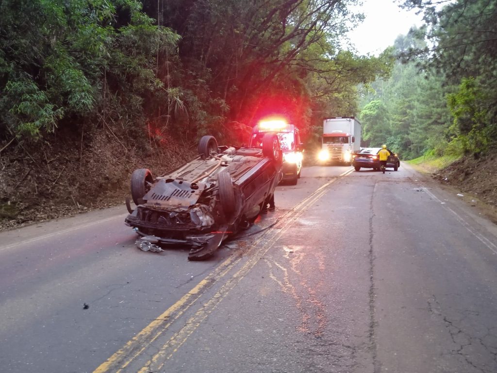 Capotamento deixa duas pessoas feridas na SC-150 em Luzerna neste sábado