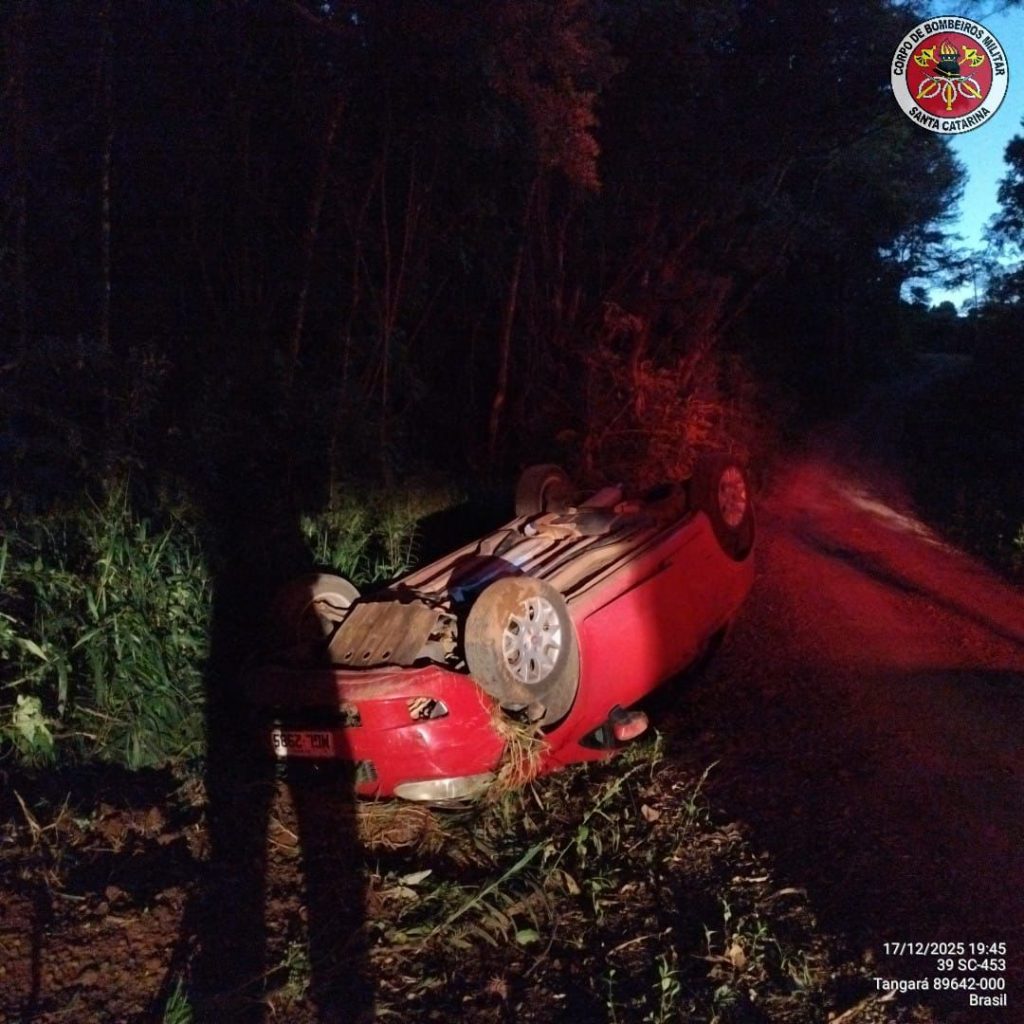 Um capotamento foi registrado na noite desta quarta-feira (17) na Linha Santa Catarina, em Tangará, no sentido da comunidade de Morro Agudo. A ocorrência foi atendida pouco antes das 19h30 pelo Corpo de Bombeiros Militar.
