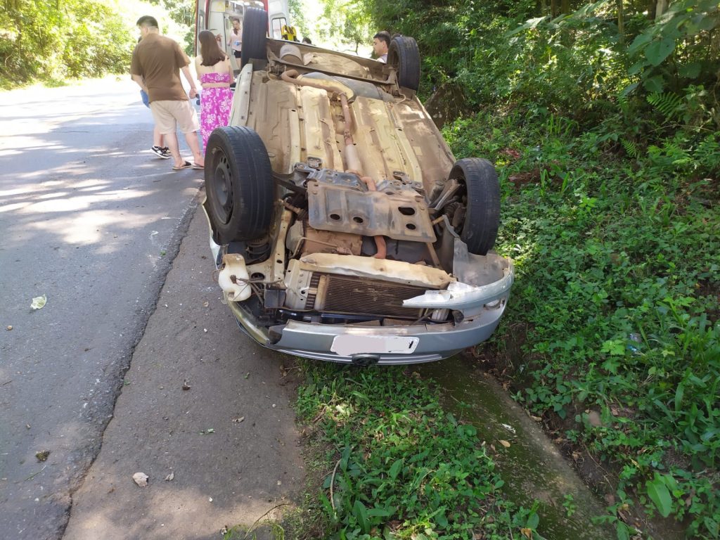 Capotamento na SC-150 deixa criança e mulher feridas em Luzerna