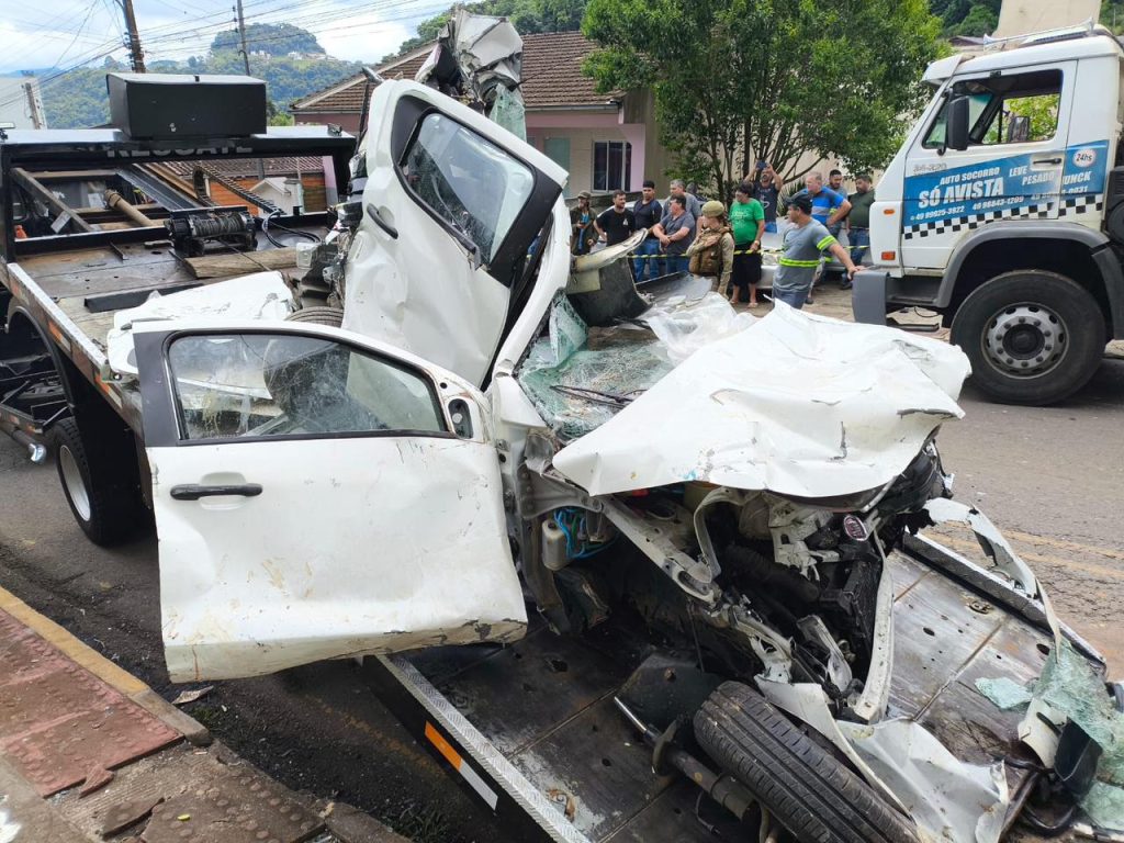 O casal identificado como Genésio (74) e Miguelina (77) permanece internado na UTI do Hospital Universitário Santa Terezinha (HUST) após o gravíssimo acidente registrado na manhã desta quinta-feira (13) na rua Santa Catarina, em Herval d’Oeste. Eles estavam no Fiat Mobi que foi esmagado por um caminhão carregado com aves, que perdeu o controle na descida.