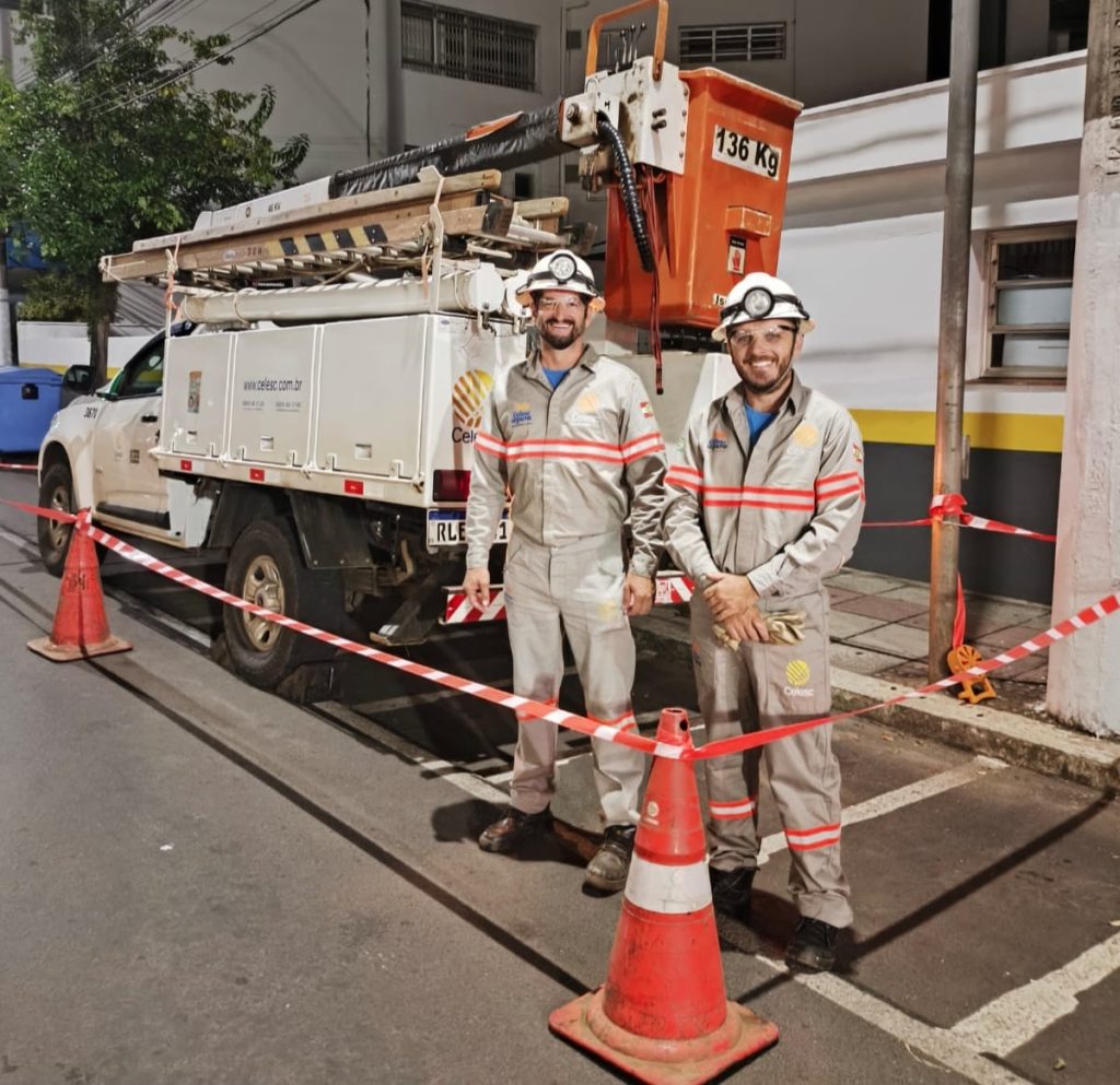 Para assegurar resposta rápida em caso de eventualidade, a Celesc mobiliza uma equipe reforçada, com caminhão equipado com guindaste e transformadores de reserva, possibilitando a substituição imediata de equipamentos, se necessário. Além disso, equipes leves com caminhonete e cesto aéreo permanecem em prontidão durante todo o evento.