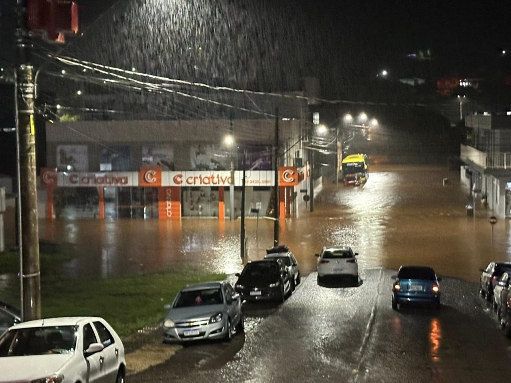 Em Ponte Serrada, a chuva torrencial provocou alagamentos em diversos pontos da área central durante a madrugada desta quinta-feira. A água invadiu estabelecimentos comerciais na Rua Frei Caetano e chegou a submergir parcialmente veículos estacionados. O rio Ponte Serrada transbordou em alguns trechos, atingindo residências e comércios. Moradores circularam pelas ruas com a água acima dos joelhos. Até o momento, não há levantamento oficial dos prejuízos, conforme informações do site Oeste Mais.