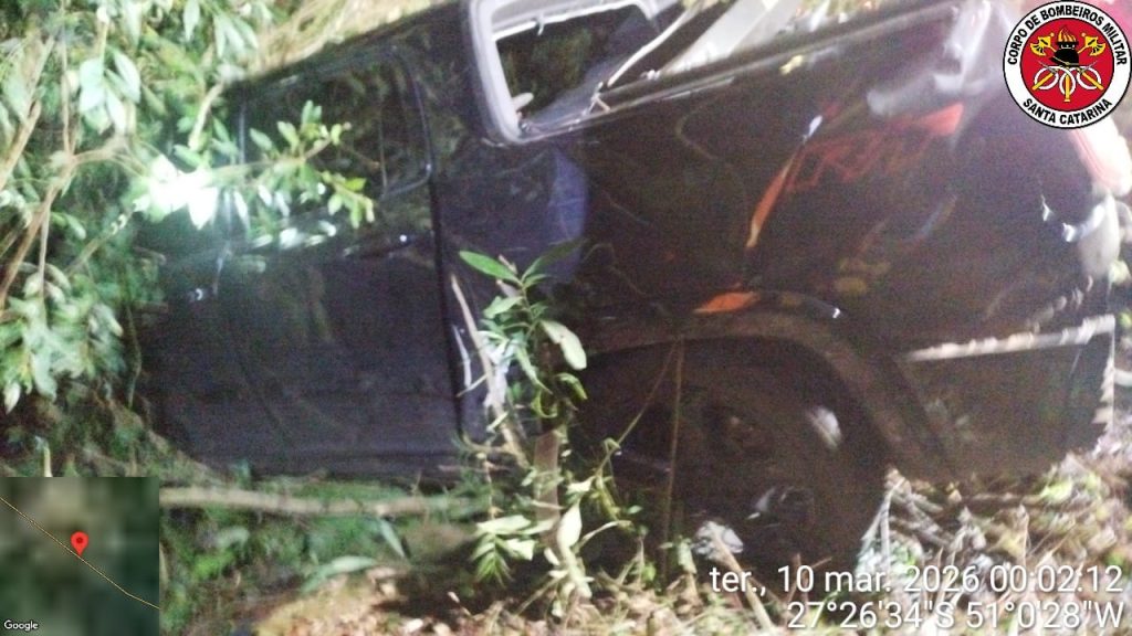 Já o motorista da caminhonete, um homem adulto, foi encontrado desacordado e já estava sendo atendido dentro de uma ambulância do Samu, quando as equipes dos bombeiros chegaram ao local. Por conta do estado da vítima, não foi possível realizar sua identificação no momento do atendimento.