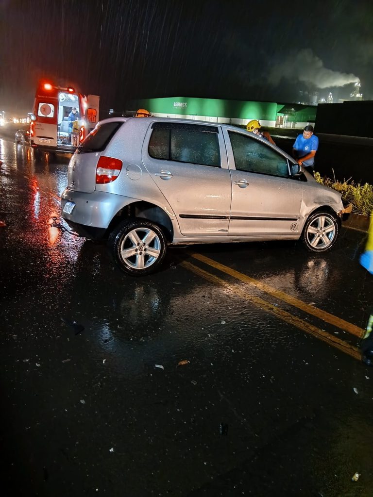 O acidente envolveu um VW Fox, conduzido por um homem de 45 anos, que foi encontrado inconsciente e preso às ferragens, com as pernas presas na estrutura do veículo. Os socorristas realizaram o trabalho de desencarceramento utilizando equipamentos específicos para a retirada da vítima.