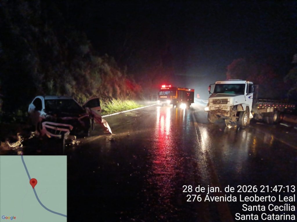 Um grave acidente de trânsito foi registrado na noite de terça-feira (28), por volta das 21h35, na BR-116, na altura do km 134, no trecho entre Santa Cecília e Lebon Régis. A ocorrência mobilizou o trem de socorro do Corpo de Bombeiros Militar de Santa Cecília.