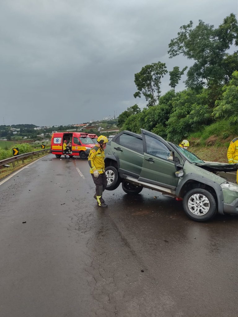 Ao chegarem ao local, os bombeiros constataram uma colisão envolvendo um Fiat Palio Weekend. O outro veículo envolvido, uma carreta Volvo FH, teria deixado o local antes da chegada do socorro. Diante da situação, as equipes realizaram a análise da cena, o gerenciamento de riscos e o bloqueio total da rodovia nos dois sentidos para garantir a segurança do atendimento.