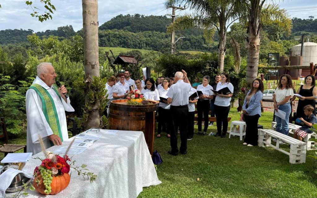 Era impossível não se emocionar. O cenário era a Vinícola Duelo, na Linha Santo Isidoro, em Pinheiro Preto, mas a sensação era de estar em um filme de época. O som das orações em italiano, na missa rezada no idioma logo cedo, se misturava ao aroma adocicado das uvas maduras, prontas para a colheita. Foi ali, em meio aos parreirais e sob os olhares atentos da comunidade, que a Capital Catarinense do Vinho abriu oficialmente, neste fim de semana, a sua I Vindima.