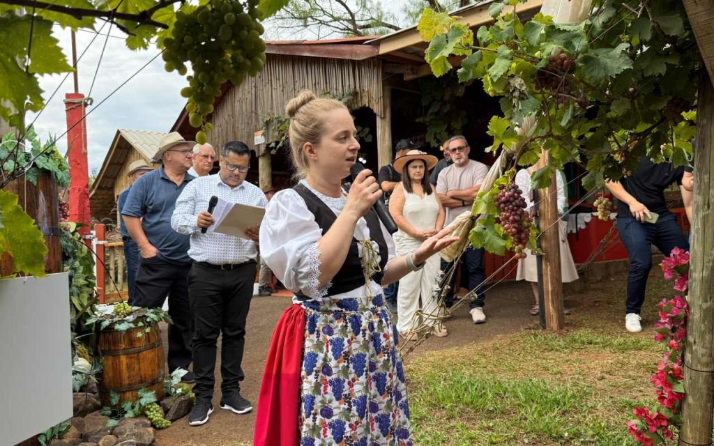 Não foi apenas um evento formal. Foi um resgate. O corte simbólico dos primeiros cachos não foi feito por autoridades de terno, mas pelas mãos de quem construiu essa história: os descendentes dos imigrantes.