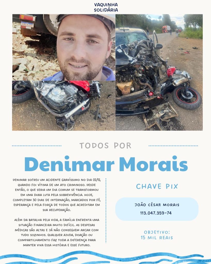 Desde o acidente, Denimar permanece em tratamento, já somando cerca de 30 dias de internação e recuperação. Além da batalha pela vida, a família enfrenta dificuldades financeiras devido aos altos custos médicos, o que motivou a criação de uma vaquinha solidária para arrecadar recursos.