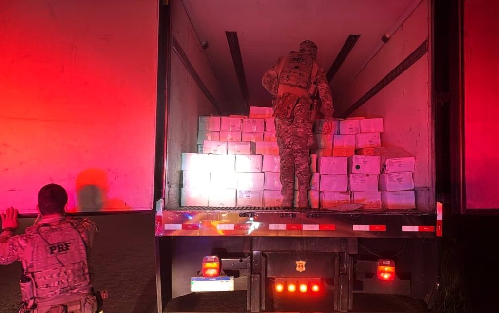 Na madrugada desta quinta-feira (09), policiais rodoviários federais apreenderam na BR-153 em Água Doce, cerca de 8.000 quilos de camarão contrabandeado da Argentina. A mercadoria, de importação proibida conforme os órgãos sanitários, foi encontrada durante fiscalização a um caminhão-baú com inscrições de uma banda musical.