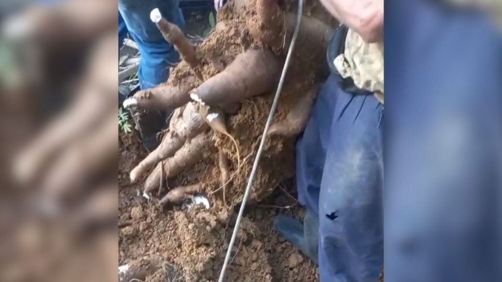 Inacreditável: Família colhe aipim de 84 quilos no quintal de casa em Santa Catarina