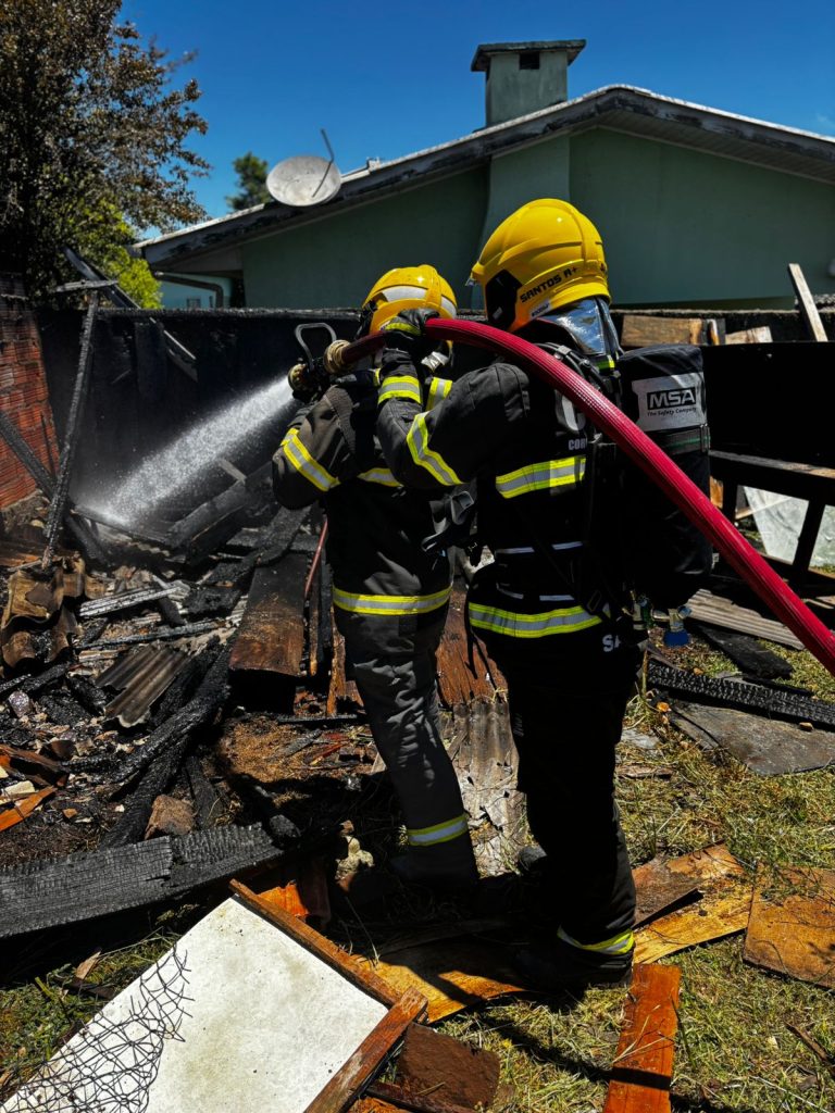Ao chegar ao local, as equipes constataram que o incêndio atingia uma pequena construção, com apenas um cômodo, situada nos fundos da casa principal. Rapidamente, os bombeiros montaram duas linhas de combate e utilizaram cerca de mil litros de água para conter as chamas e resfriar áreas próximas, evitando que o incêndio se espalhasse para outras propriedades.