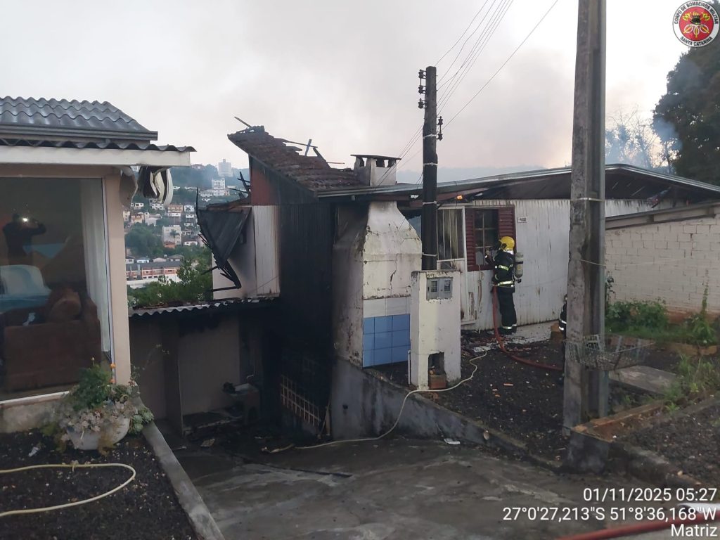 A madrugada deste sábado (1º) foi marcada por momentos de apreensão em Videira. Um incêndio destruiu uma residência na Rua Guilherme Matias, no Bairro Matriz, e mobilizou diversas equipes do Corpo de Bombeiros.