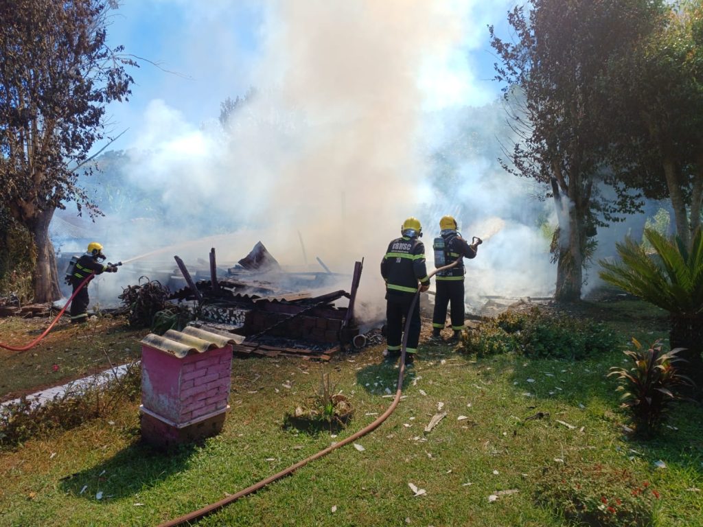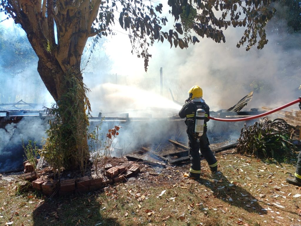 Uma residência de madeira foi completamente destruída por um incêndio no início da tarde deste domingo (19), na comunidade de Linha Vale Pio, interior de São João do Oeste. O Corpo de Bombeiros de Itapiranga e Iporã do Oeste foram mobilizados por volta das 12h18 para combater as chamas.
