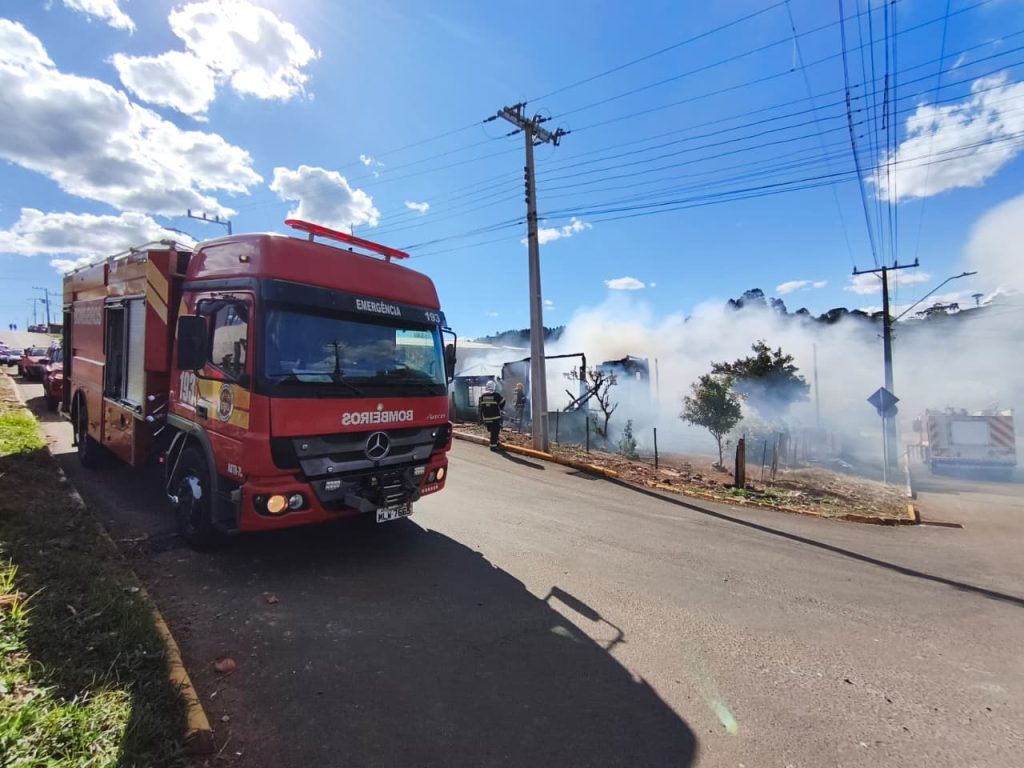 Incêndio destrói residência em Curitibanos e mobiliza Corpo de Bombeiros