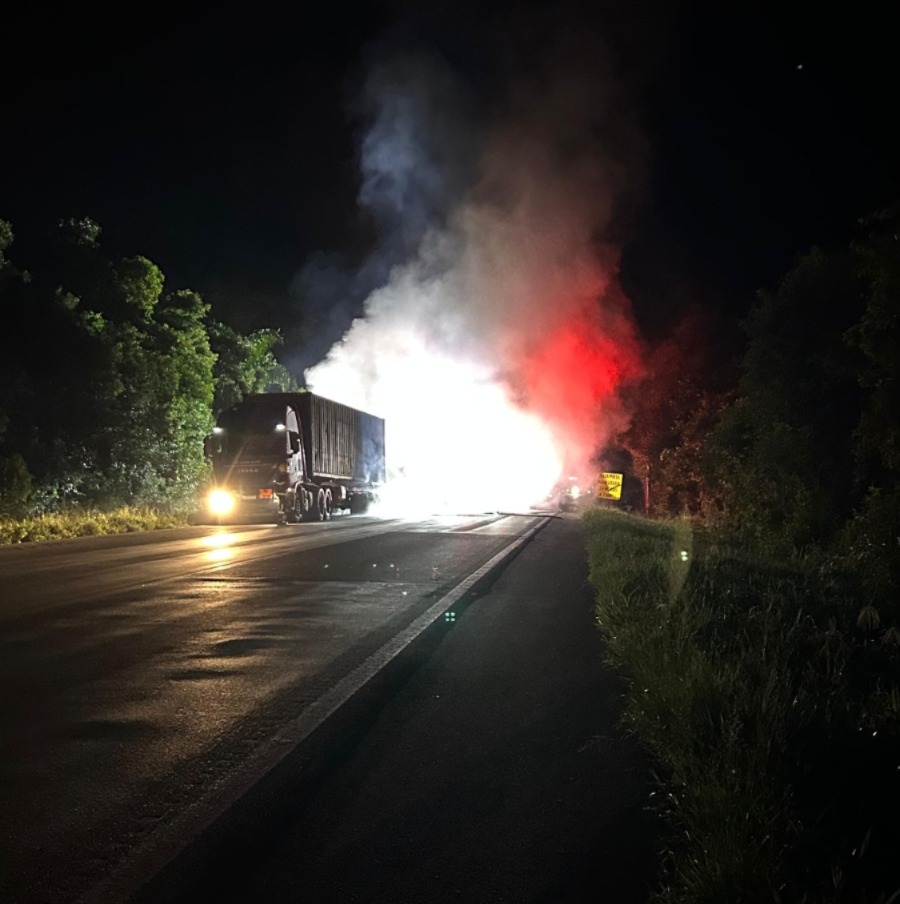 A Polícia Rodoviária Federal (PRF) também esteve no local, auxiliando no controle do tráfego e garantindo a segurança dos usuários da rodovia enquanto a ocorrência era atendida. Até o momento, não há informações sobre vítimas e as causas do incêndio ainda não foram divulgadas.