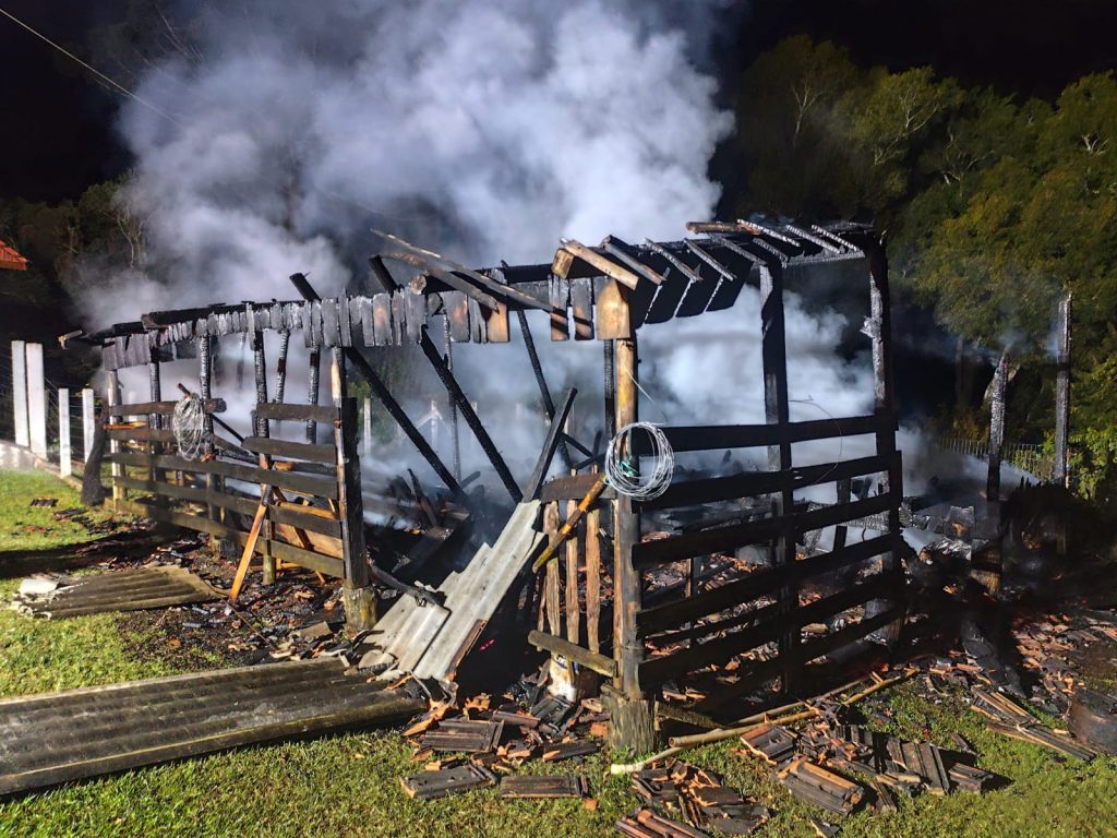 Um incêndio estrutural atingiu um depósito de aproximadamente 80 metros quadrados na noite desta terça-feira (10), em uma propriedade rural localizada na Estrada da Linha Glória, no município de Rio das Antas. A ocorrência foi atendida por volta das 23h15 pela guarnição do Corpo de Bombeiros Militar.