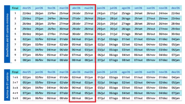 - Acima de 1 salário mínimo: Recebem a 1ª parcela entre 02 e 08 de maio.