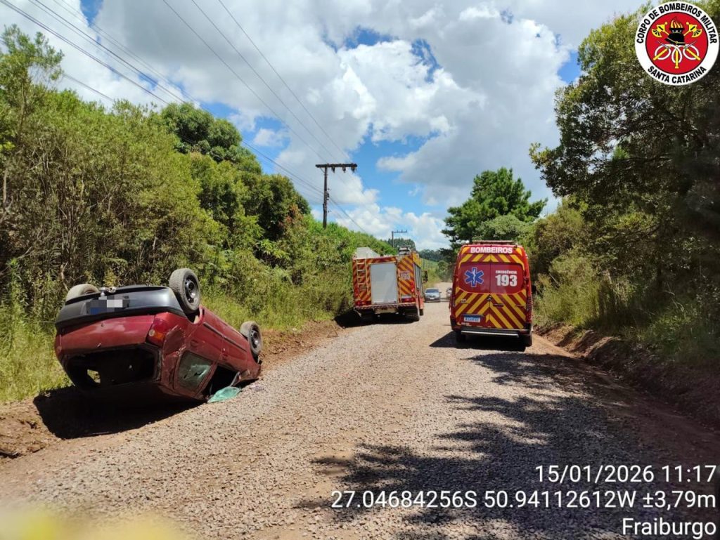 Uma jovem de 21 anos ficou ferida após um capotamento registrado na manhã desta quinta-feira (15), por volta das 11h05, na Avenida Guilherme Pinz, no bairro São Miguel, em Fraiburgo, mobilizando o Corpo de Bombeiros Militar.