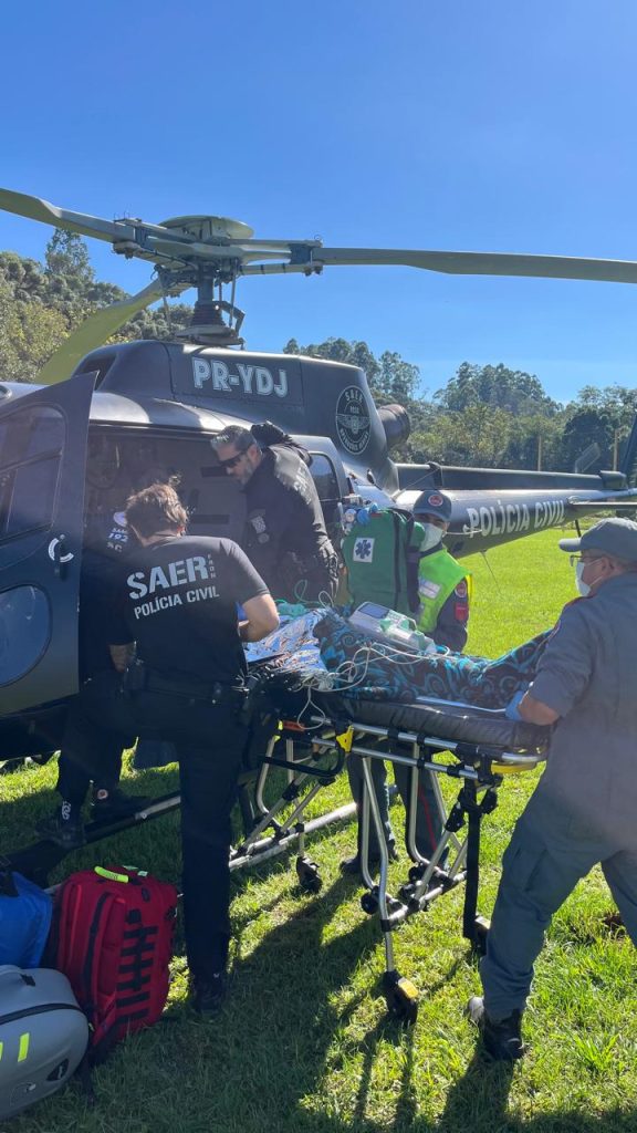 A aeronave da Polícia Civil de Santa Catarina, tripulada por policiais do SAER-Fron e profissionais do Serviço de Atendimento Móvel de Urgência (SAMU) Aeromédico, foi acionada para prestar atendimento à vítima.