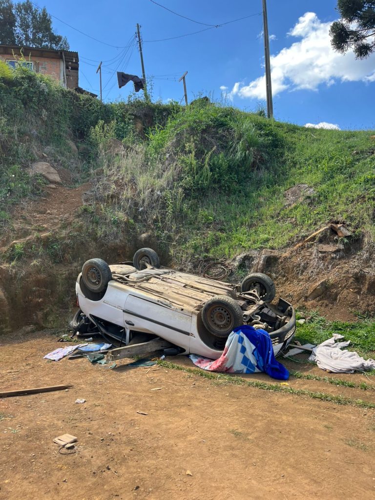Um capotamento mobilizou o Corpo de Bombeiros Militar na tarde desta quarta-feira (4), em Santa Cecília. A ocorrência foi registrada por volta das 14h25 na Rua Professor Carlos Beli e envolveu um veículo Gol.