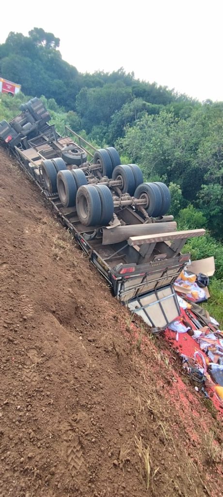 Um motorista de 49 anos ficou encarcerado após o tombamento de uma carreta na manhã desta quarta-feira (25), na BR-282, na altura da Curva do São Luiz, em Ponte Serrada, no sentido ao trevo de Irani. O Corpo de Bombeiros Militar foi acionado por volta das 7h20 para atender a ocorrência.