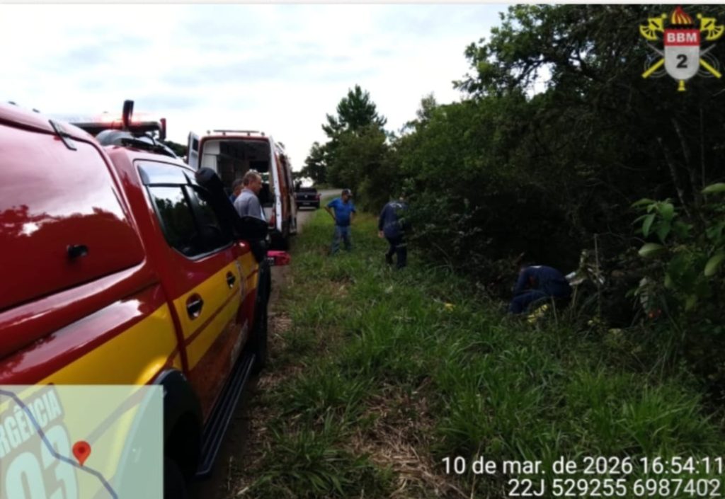 No local, os socorristas constataram que o acidente envolveu uma VW Saveiro Cross, com placas do padrão Mercosul. O veículo era conduzido por um homem de 34 anos, que já se encontrava fora do automóvel no momento da chegada das equipes de resgate.