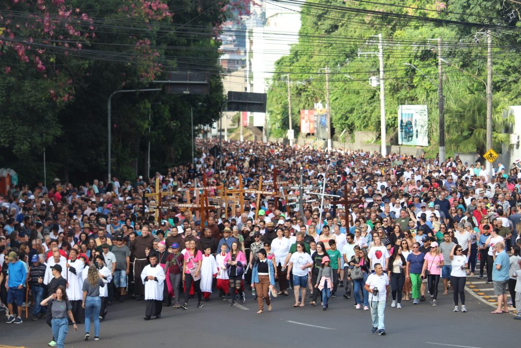 - Início da Caminhada: A saída oficial ocorre às 08h, em frente à Catedral. Os fiéis percorrem as ruas de Joaçaba em um trajeto marcado por cânticos, orações e muitos gestos de penitência (muitos realizam o percurso descalços em pagamento de promessas).