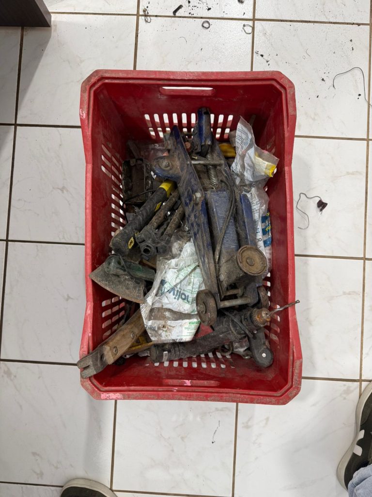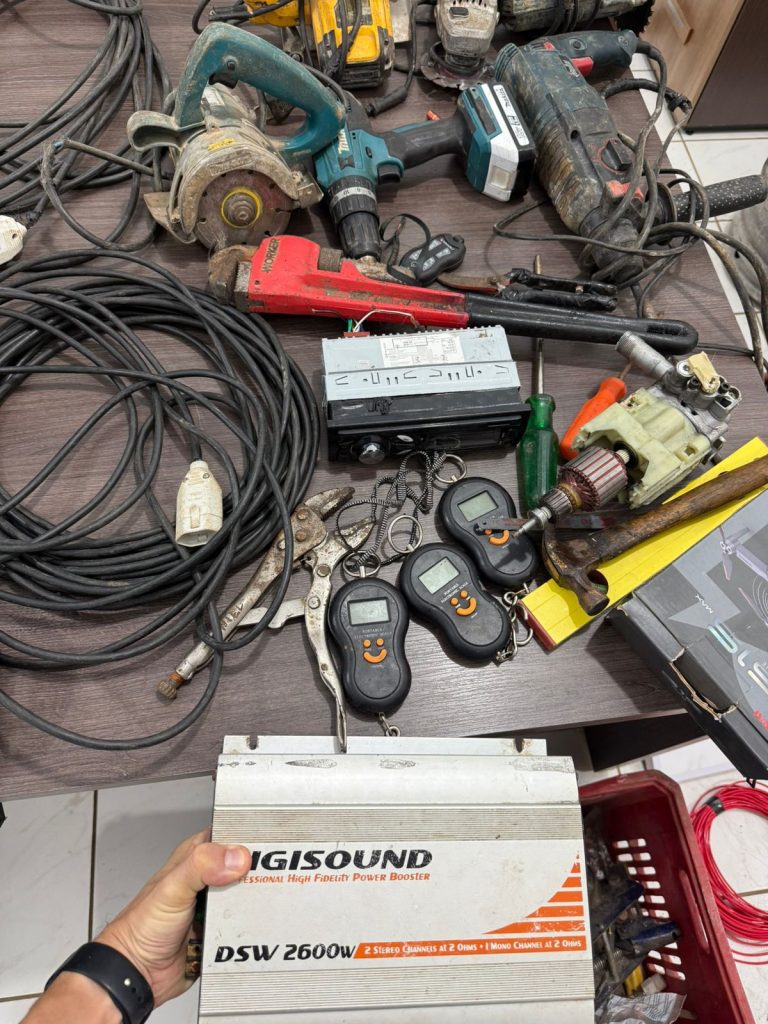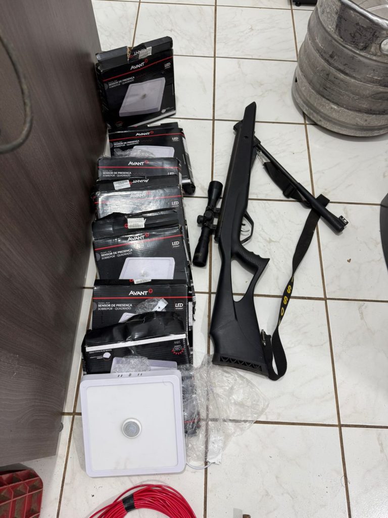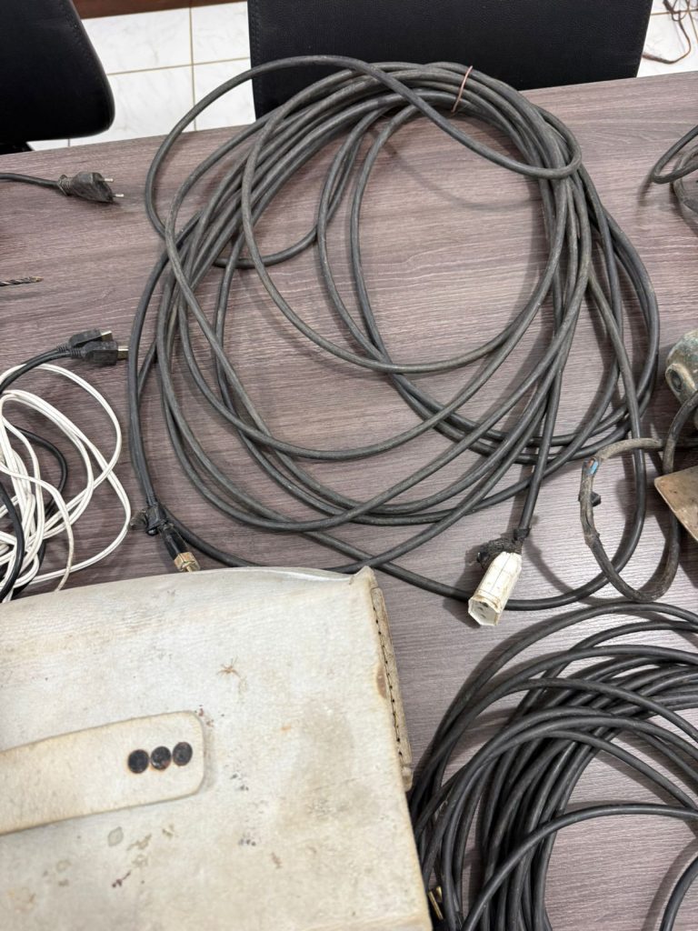 Durante o cumprimento do mandado de busca e apreensão, os policiais encontraram itens levados das vítimas, além de fios queimados e cobre já extraído — prática comum para comercialização ilegal do material. No local, também foi apreendida uma arma de fogo de fabricação caseira.