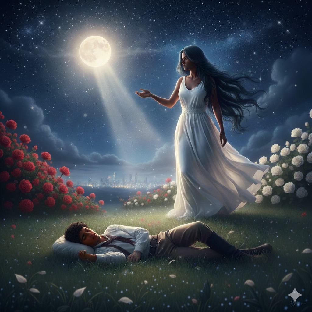 Novamente, a bela mulher do sonho anterior retornou. Aproximou-se do peão e, desta vez, cochichou em seu ouvido, como se houvesse alguém próximo que não pudesse ouvir: 'Pedro, sua sorte está em São Paulo. Você precisa ir para lá para ter a vida que tanto sonha.' Depois, virou-se e subiu em direção ao céu, até sumir no infinito.