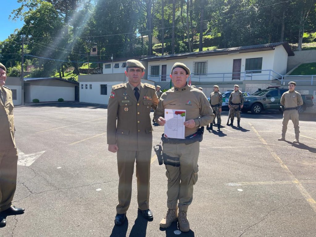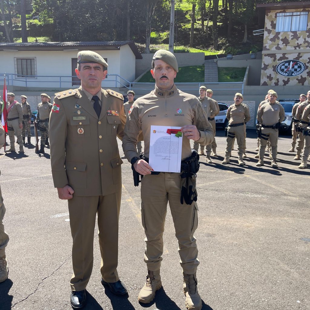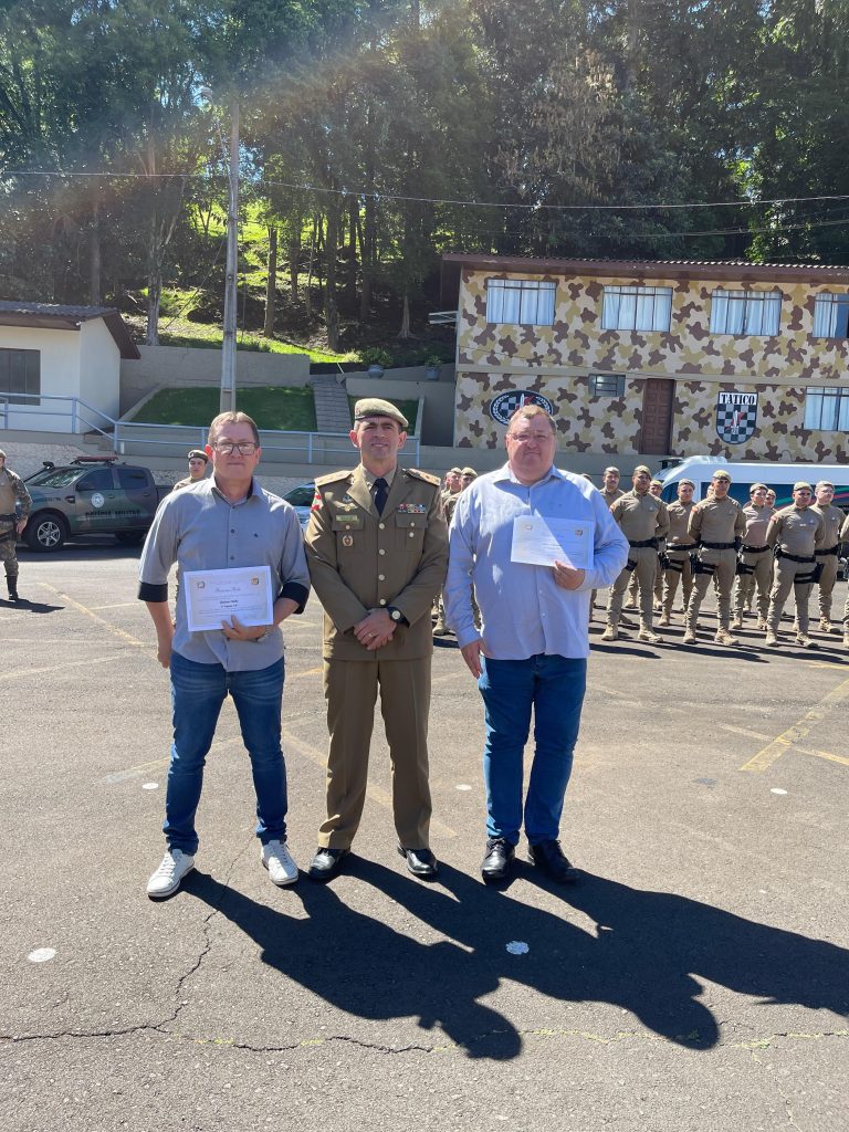 Também foram homenageados com o Diploma de Honra ao Mérito os 2º Sargentos Antônio Ciello e Nilso Schneider, em reconhecimento às mais de três décadas dedicadas ao serviço policial militar. A cerimônia contou ainda com a promoção de três praças ao posto de Subtenente: