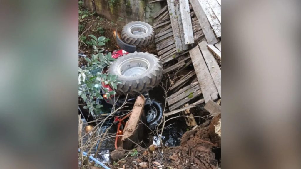 O equipamento estava se deslocando para realizar um serviço quando uma ponte cedeu, ocasionando a queda do trator no rio.
