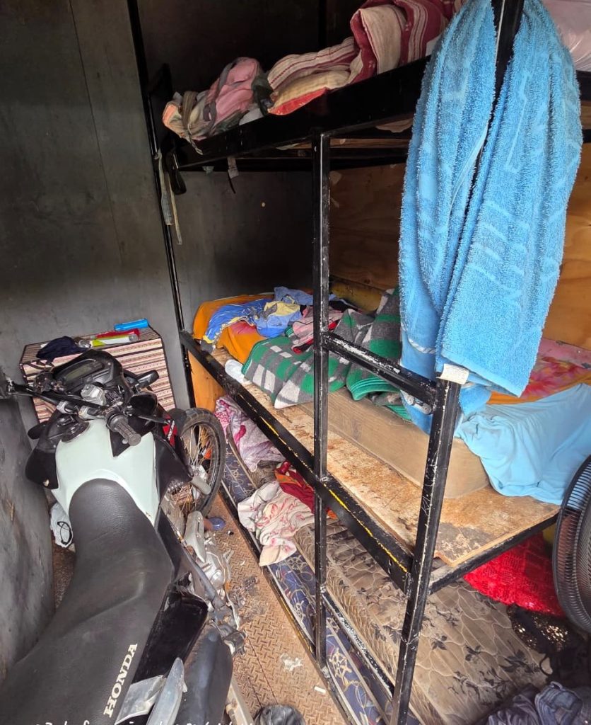 Durante a abordagem a um caminhão, os policiais encontraram seis pessoas sendo transportadas no compartimento de carga do veículo, em meio a mercadorias e sem qualquer condição de segurança. O grupo seguia de Guarapuava (PR) com destino a Xanxerê, onde trabalharia em um parque de diversões.