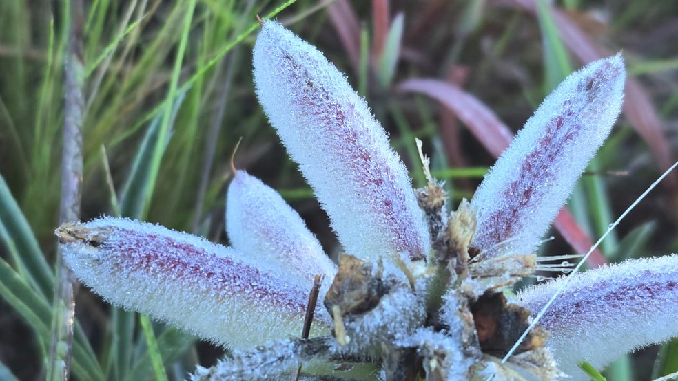Imagens feitas no local mostram a vegetação coberta por uma fina camada de gelo, formando o cenário típico do fenômeno. A geada ocorreu a cerca de 3 quilômetros do centro da cidade, às margens da SC-114, área que integra o Roteiro Turístico Caminhos da Neve.