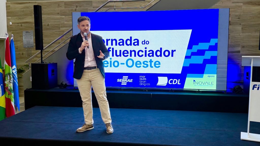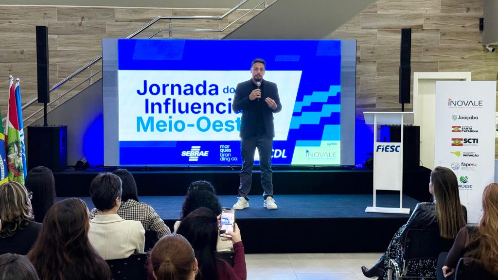 A forma como o comércio do Meio-Oeste catarinense se relaciona com o consumidor no ambiente digital começou a mudar de patamar na noite desta quarta-feira (29). Com o Polo Inovale lotado em Joaçaba, o Sebrae/SC, em parceria com as Câmaras de Dirigentes Lojistas (CDLs) da região e a Marques Branding Co., lançou oficialmente a Jornada do Influenciador Meio-Oeste.