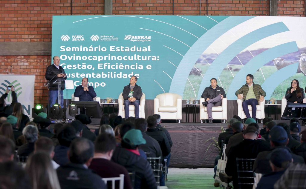 Campos Novos foi palco do maior evento já realizado em Santa Catarina voltado à cadeia produtiva de ovinos e caprinos: o Seminário Estadual da ATeG Ovinocaprinocultura: Gestão, Eficiência e Sustentabilidade no Campo. A iniciativa, que contou com a correalização do Sebrae/SC, Sistema Faesc/Senar e Sindicato dos Produtores Rurais de Campos Novos, reuniu mais de 500 produtores, lideranças do agro, técnicos e entidades de apoio no Parque de Exposições Leônidas Rupp.