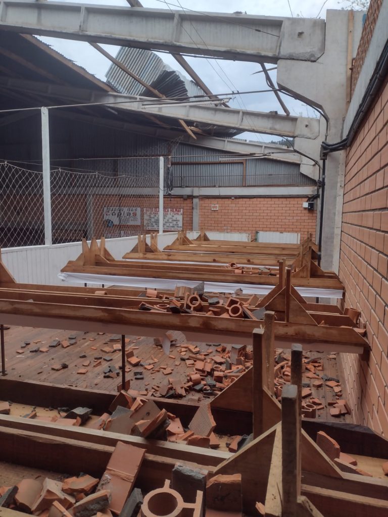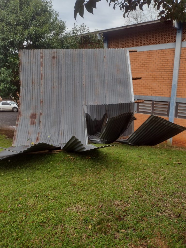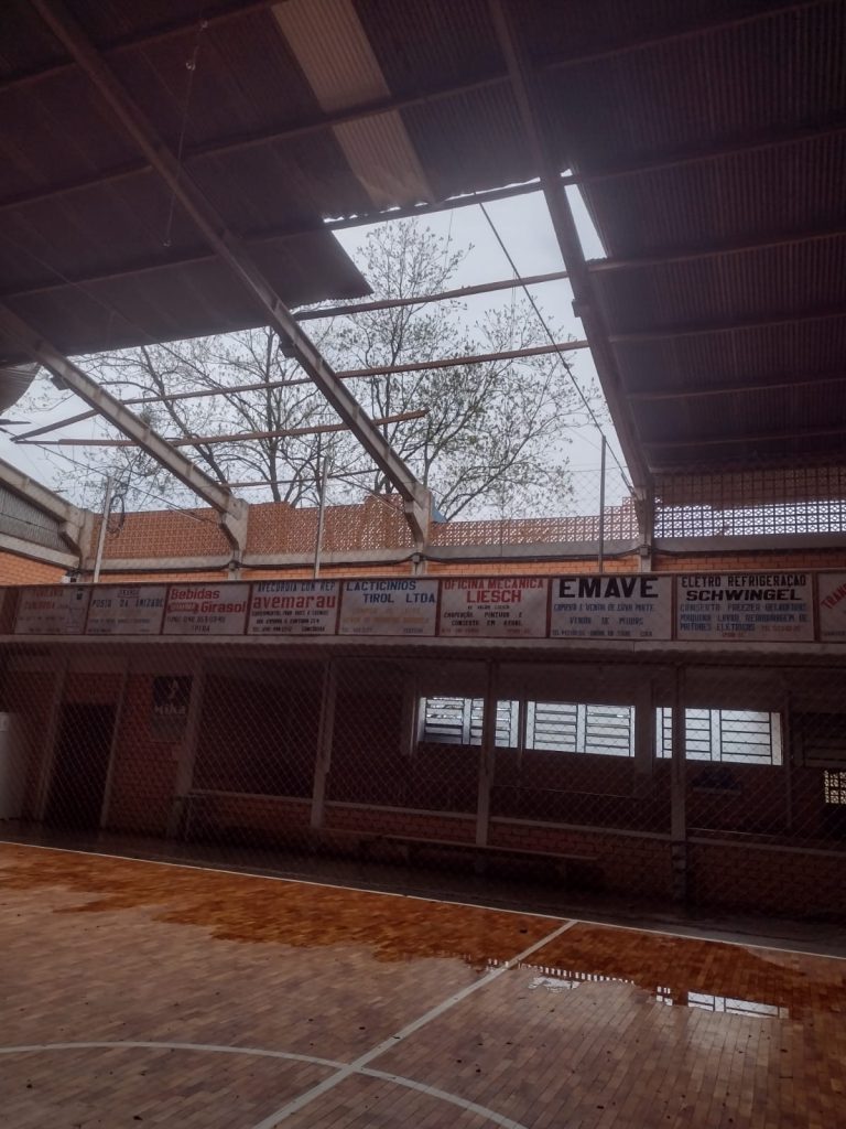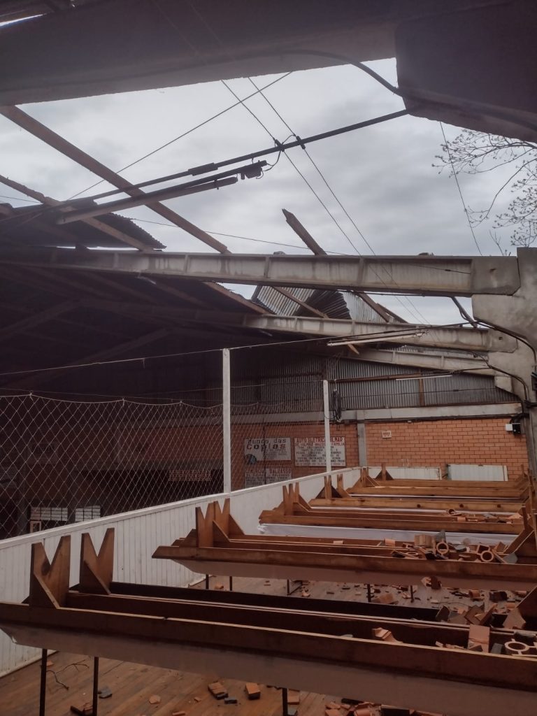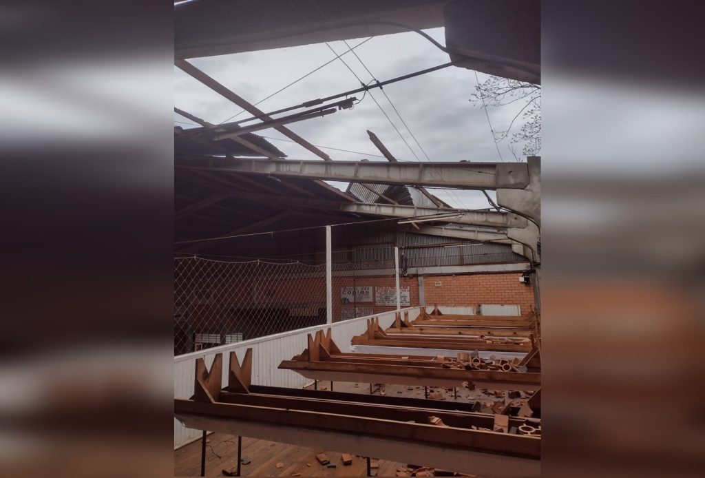 Uma forte ventania provocou estragos no Centro Comunitário da comunidade de Alto São Pedro, em Ipira, durante a madrugada desta terça-feira (30). Parte do telhado foi arrancada, deixando o espaço – utilizado para encontros e eventos locais – com danos significativos.