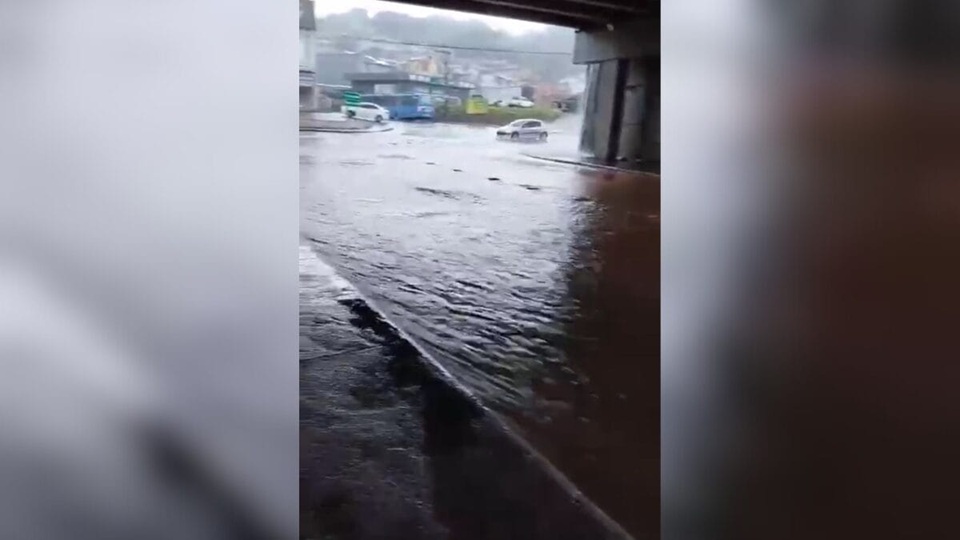 Fenômeno associado a um ciclone extratropical transformou ruas em rios e encostas em cachoeiras na manhã desta terça-feira