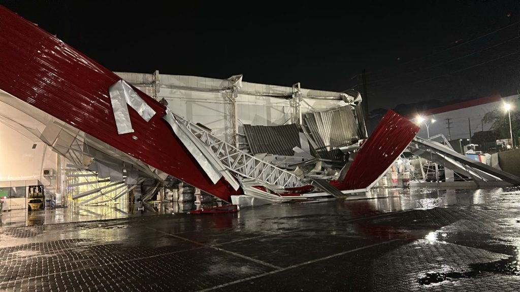 Ventos fortes atingiram diversos pontos da cidade; Videplast foi uma das estruturas mais danificadas, e Defesa Civil segue avaliando os prejuízos.