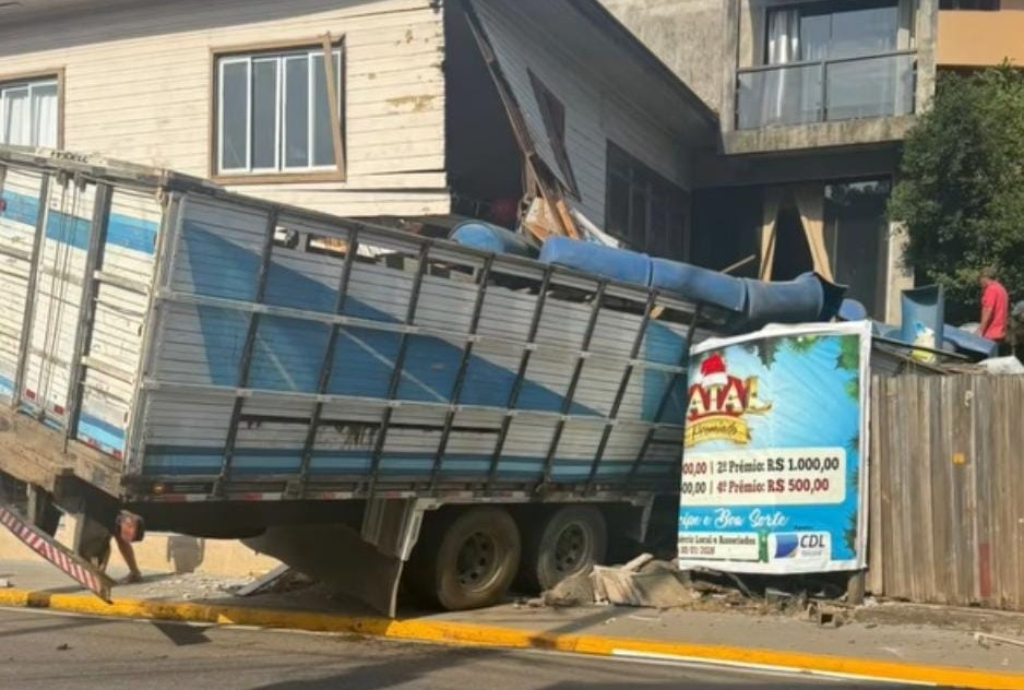 O caminhão estava carregado com bois que eram levados para um evento no município. No local do impacto funciona uma academia, felizmente no momento ninguém foi atingido pelo caminhão.