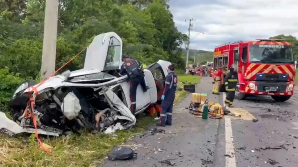 Já a picape Fiat Strada de Capinzal era ocupada por três pessoas — um homem de 46 anos, uma mulher de 48 e um jovem de 19 anos. Apesar da violência do impacto, nenhum dos ocupantes do veículo capinzalense ficou ferido, o que chamou a atenção diante da gravidade do acidente.