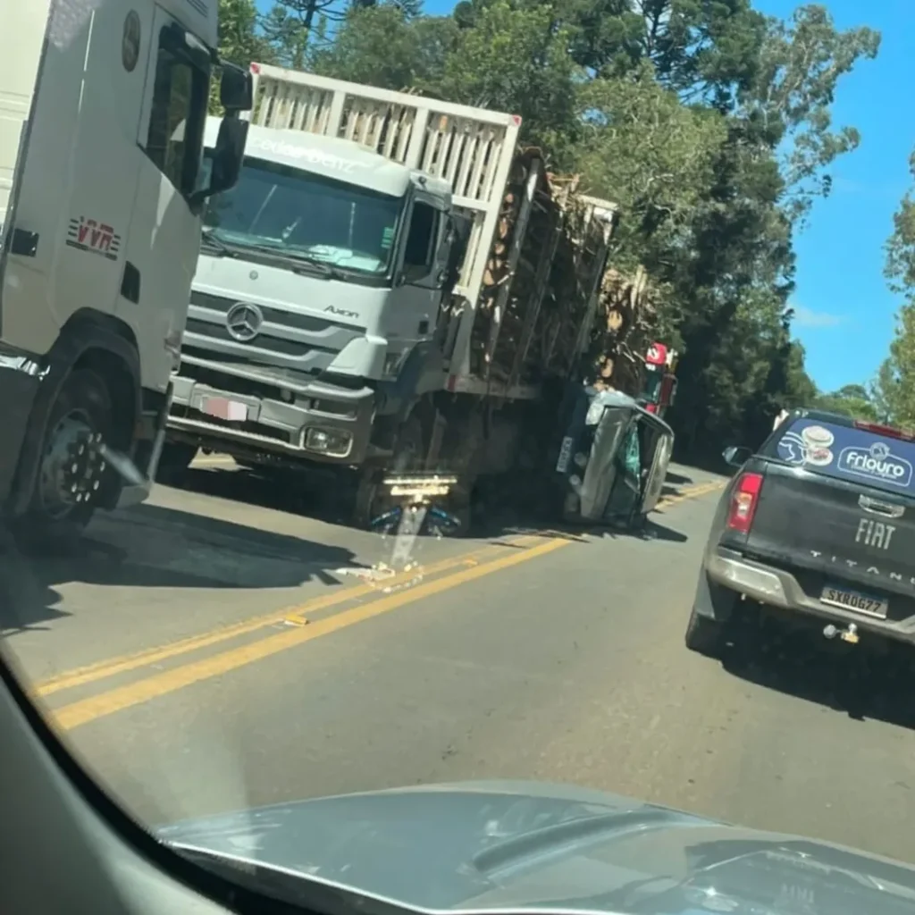 De acordo com as informações apuradas no local, um Volkswagen Gol, com placas de Fraiburgo, teria realizado uma ultrapassagem em local proibido, momento em que acabou ficando prensado entre dois caminhões. O acidente envolveu ainda um caminhão-trator Scania R450, conduzido por um jovem de 21 anos, e um Mercedes-Benz Axor, dirigido por um homem de 42 anos.